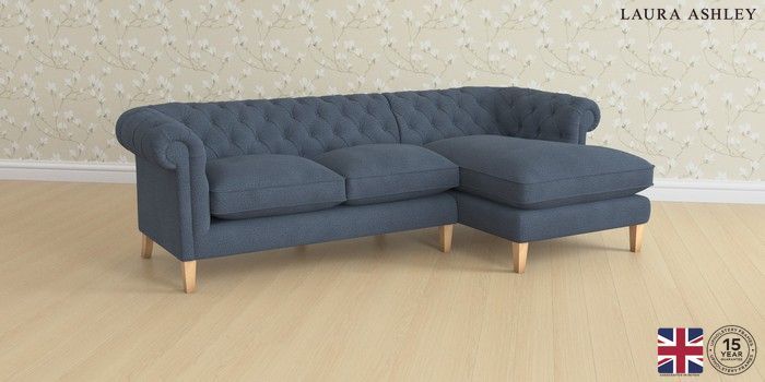 6.12.1 Buy Penarth by Laura Ashley Medium Sofa Chaise - Right Hand Lundar Chenille Navy Blue Straight Mid - Light Oak from the Next UK online shop Click here to use our accessible website