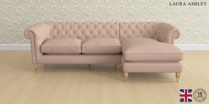 6.12.1 Buy Penarth by Laura Ashley Medium Sofa Chaise - Right Hand Melbreak Geo Chalk Pink Straight Brass Castor - Light Oak from the Next UK online shop Click here to use our accessible website
