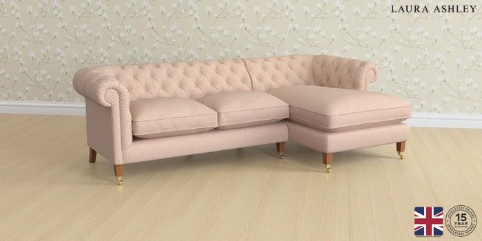 6.12.1 Buy Penarth by Laura Ashley Medium Sofa Chaise - Right Hand Melbreak Geo Chalk Pink Straight Brass Castor - Teak from the Next UK online shop Click here to use our accessible website