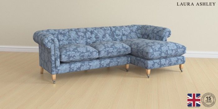 6.12.1 Buy Penarth by Laura Ashley Medium Sofa Chaise - Right Hand Tamara Dusky Seaspray Blue Straight Chrome Castor - Light Oak from the Next UK online shop Click here to use our accessible website