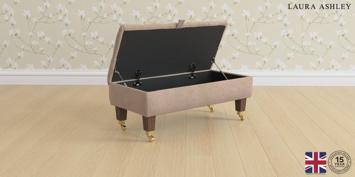 7.2.6 Buy Penarth by Laura Ashley Storage Footstool Ailsworth Mink Natural Straight Brass Castor - Chestnut from the Next UK online shop Click here to use our accessible website