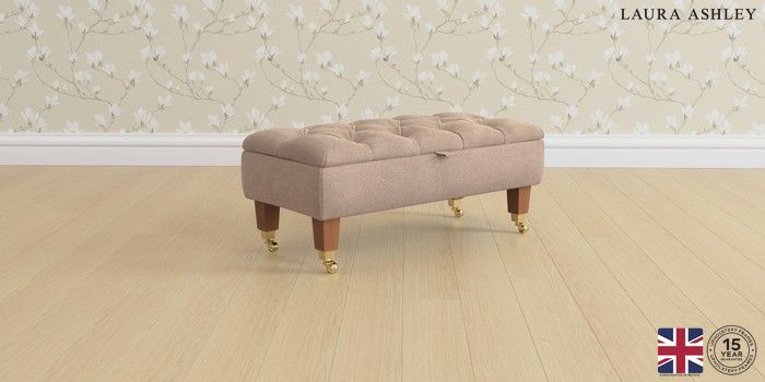 6.12.1 Buy Penarth by Laura Ashley Storage Footstool Ailsworth Mink Natural Straight Brass Castor - Teak from the Next UK online shop Click here to use our accessible website