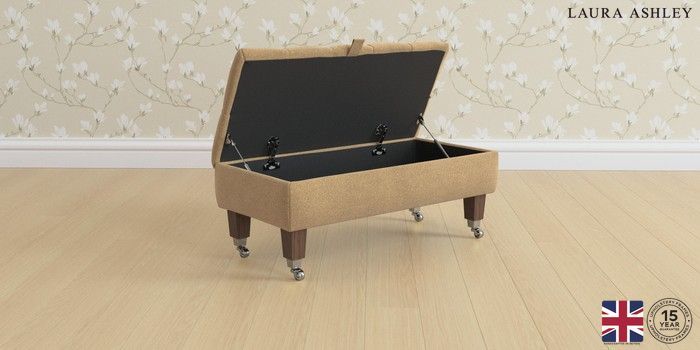 7.2.6 Buy Penarth by Laura Ashley Storage Footstool Lundar Chenille Caramel Natural Straight Chrome Castor - Chestnut from the Next UK online shop Click here to use our accessible website