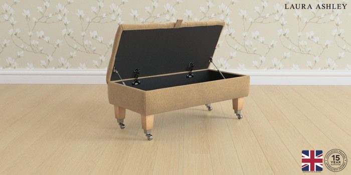7.2.6 Buy Penarth by Laura Ashley Storage Footstool Lundar Chenille Caramel Natural Straight Chrome Castor - Light Oak from the Next UK online shop Click here to use our accessible website