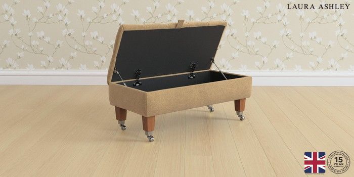 7.2.6 Buy Penarth by Laura Ashley Storage Footstool Lundar Chenille Caramel Natural Straight Chrome Castor - Teak from the Next UK online shop Click here to use our accessible website