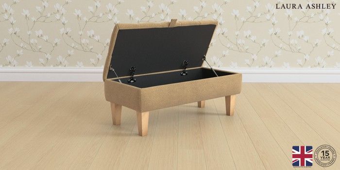 7.2.6 Buy Penarth by Laura Ashley Storage Footstool Lundar Chenille Caramel Natural Straight Mid - Light Oak from the Next UK online shop Click here to use our accessible website