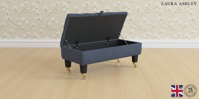 7.2.6 Buy Penarth by Laura Ashley Storage Footstool Lundar Chenille Navy Blue Straight Brass Castor - Black from the Next UK online shop Click here to use our accessible website