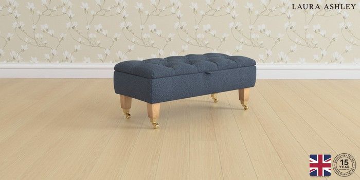 6.12.1 Buy Penarth by Laura Ashley Storage Footstool Lundar Chenille Navy Blue Straight Brass Castor - Light Oak from the Next UK online shop Click here to use our accessible website