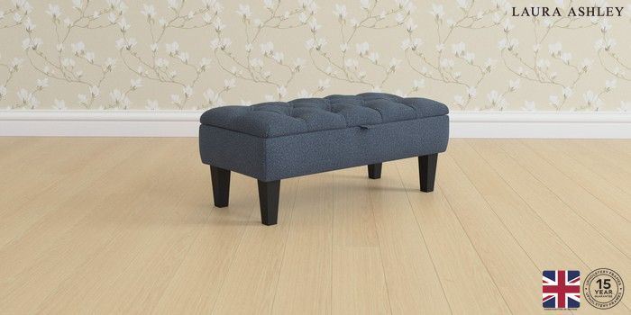 6.12.1 Buy Penarth by Laura Ashley Storage Footstool Lundar Chenille Navy Blue Straight Mid - Black from the Next UK online shop Click here to use our accessible website