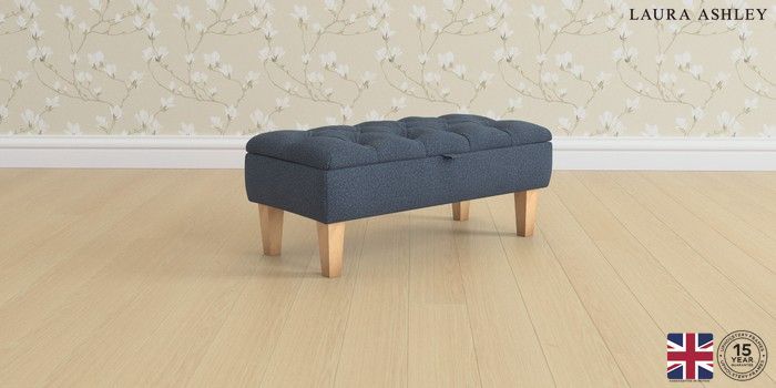 6.12.1 Buy Penarth by Laura Ashley Storage Footstool Lundar Chenille Navy Blue Straight Mid - Light Oak from the Next UK online shop Click here to use our accessible website