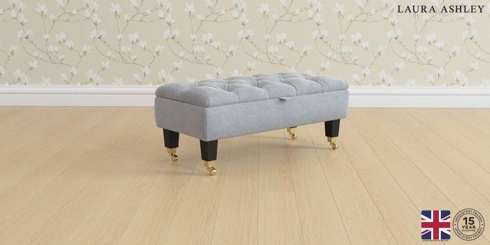 6.12.1 Buy Penarth by Laura Ashley Storage Footstool Peyton Powder Blue Straight Brass Castor - Black from the Next UK online shop Click here to use our accessible website