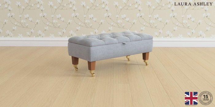 6.12.1 Buy Penarth by Laura Ashley Storage Footstool Peyton Powder Blue Straight Brass Castor - Teak from the Next UK online shop Click here to use our accessible website