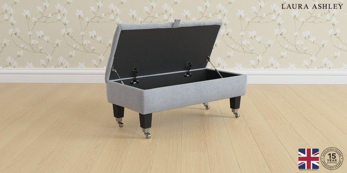 7.2.6 Buy Penarth by Laura Ashley Storage Footstool Peyton Powder Blue Straight Chrome Castor - Black from the Next UK online shop Click here to use our accessible website