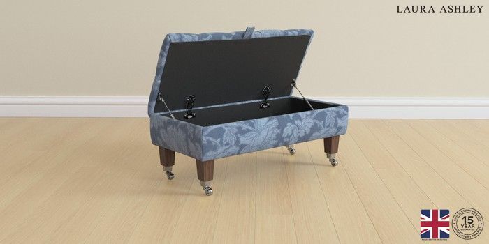 7.2.6 Buy Penarth by Laura Ashley Storage Footstool Tamara Dusky Seaspray Blue Straight Chrome Castor - Chestnut from the Next UK online shop Click here to use our accessible website