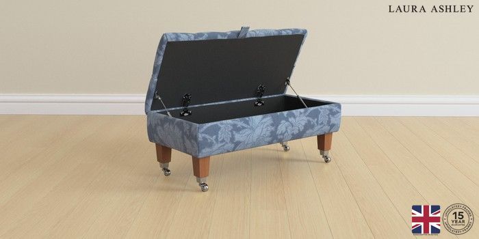 7.2.6 Buy Penarth by Laura Ashley Storage Footstool Tamara Dusky Seaspray Blue Straight Chrome Castor - Teak from the Next UK online shop Click here to use our accessible website