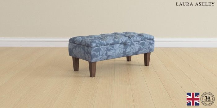 6.12.1 Buy Penarth by Laura Ashley Storage Footstool Tamara Dusky Seaspray Blue Straight Mid - Chestnut from the Next UK online shop Click here to use our accessible website