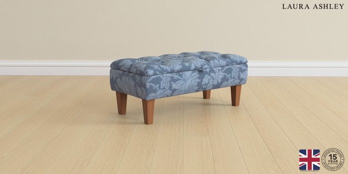 6.12.1 Buy Penarth by Laura Ashley Storage Footstool Tamara Dusky Seaspray Blue Straight Mid - Teak from the Next UK online shop Click here to use our accessible website