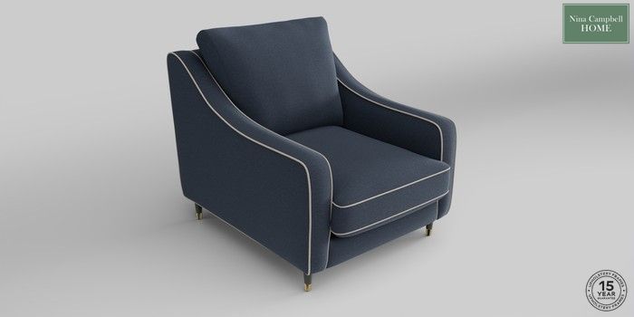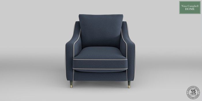 6.12.1 Buy Rosebury by Nina Campbell Armchair Moore Combo Indigo Blue and Natural Piping Tapered - Gold Cap from the Next UK online shop Click here to use our accessible website