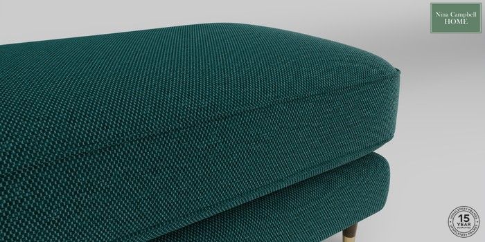 Drawing inspiration from Nina's signature aesthetic, the Rosebury offers a classic foundation beautifully elevated by a contemporary twist. The design is immediately identifiable by its elegant scoop arm silhouette, a graceful curve that flows seamlessly into the sofa’s generous proportions. This considered framing creates a substantial yet inviting look, making it a natural centrepiece for any refined living space. Featuring loose seat and back cushions, the sofa invites total relaxation. The seat itself is meticulously crafted with a foam core and a plush foam topper, ensuring a perfect balance of supportive structure and deep comfort. Finishing touches include neat pipe edge detailing that defines the structure, and a striking base of a chestnut tapered leg culminating in a smart gold cap detail, subtly reinforcing the blend of heritage style and modern flair.