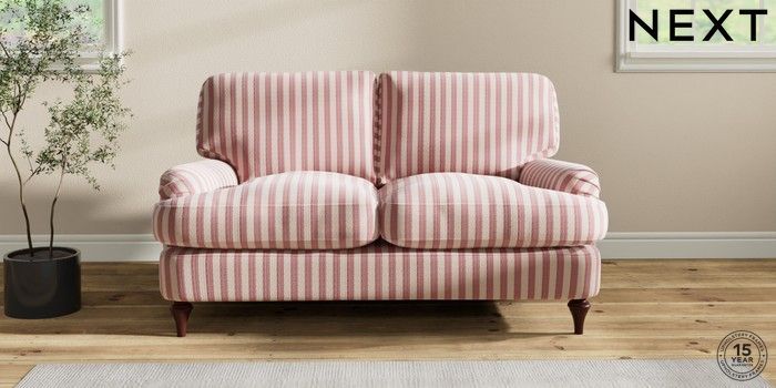 6.12.1 Buy Sadie Deep Relaxed Sit 2 Seater Small Sofa Bold Chenille Stripe Dark Pink High Slim Turned - Dark Brown from the Next UK online shop Click here to use our accessible website