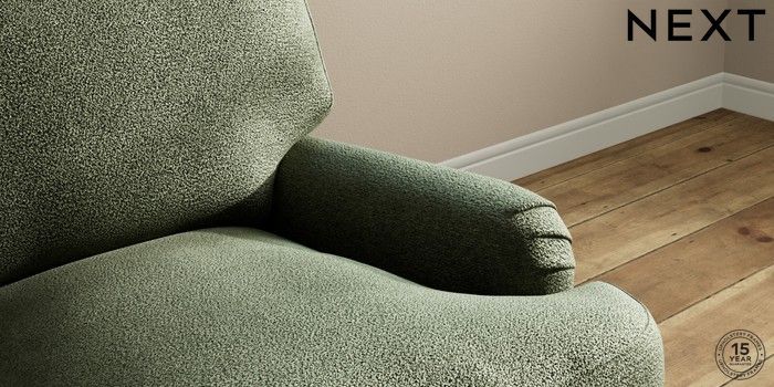 7.0.3 Buy Sadie Deep Relaxed Sit 2 Seater Small Sofa Boucle Chenille Dark Moss Green High Slim Turned - Dark from the Next UK online shop Click here to use our accessible website