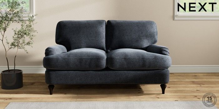 6.12.1 Buy Sadie Deep Relaxed Sit 2 Seater Small Sofa Boucle Chenille Dark Slate Blue High Slim Turned - Dark from the Next UK online shop Click here to use our accessible website