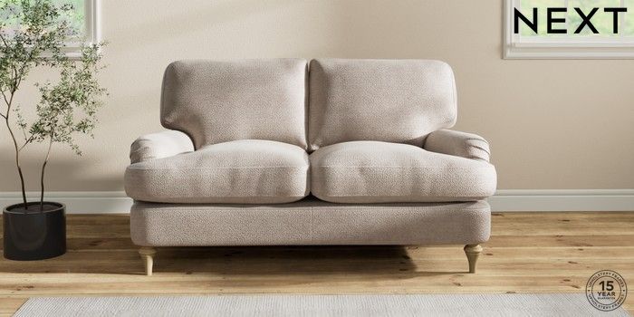 6.12.1 Buy Sadie Deep Relaxed Sit 2 Seater Small Sofa Boucle Chenille Light Natural High Slim Turned - Light from the Next UK online shop Click here to use our accessible website