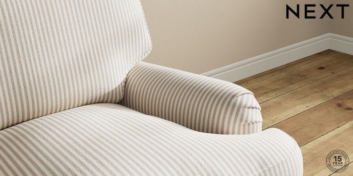 7.0.3 Buy Sadie Deep Relaxed Sit 2 Seater Small Sofa Chenille Stripe Natural High Slim Turned - Dark from the Next UK online shop Click here to use our accessible website