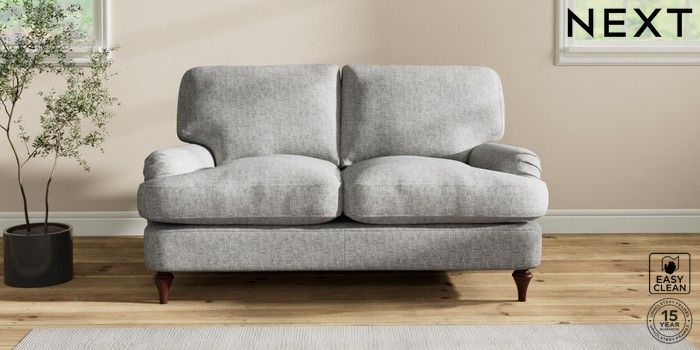 6.12.1 Buy Sadie Deep Relaxed Sit 2 Seater Small Sofa Chunky Boucle Easy Clean Light Grey High Slim Turned - Dark Brown from the Next UK online shop Click here to use our accessible website
