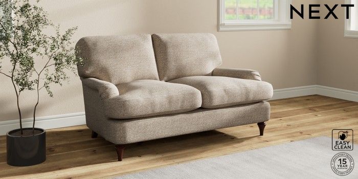 7.0.3 Buy Sadie Deep Relaxed Sit 2 Seater Small Sofa Chunky Boucle Easy Clean Mid Natural High Slim Turned - Dark Brown from the Next UK online shop Click here to use our accessible website
