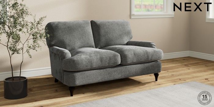 7.0.3 Buy Sadie Deep Relaxed Sit 2 Seater Small Sofa Chunky Chenille Dark Grey High Slim Turned - Dark from the Next UK online shop Click here to use our accessible website