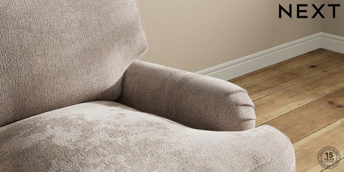7.0.3 Buy Sadie Deep Relaxed Sit 2 Seater Small Sofa Chunky Chenille Light Dove High Slim Turned - Dark Brown from the Next UK online shop Click here to use our accessible website