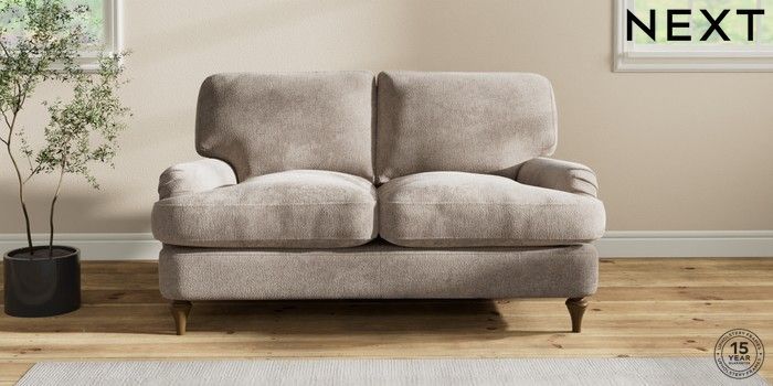 6.12.1 Buy Sadie Deep Relaxed Sit 2 Seater Small Sofa Chunky Chenille Light Dove High Slim Turned - Mid from the Next UK online shop Click here to use our accessible website