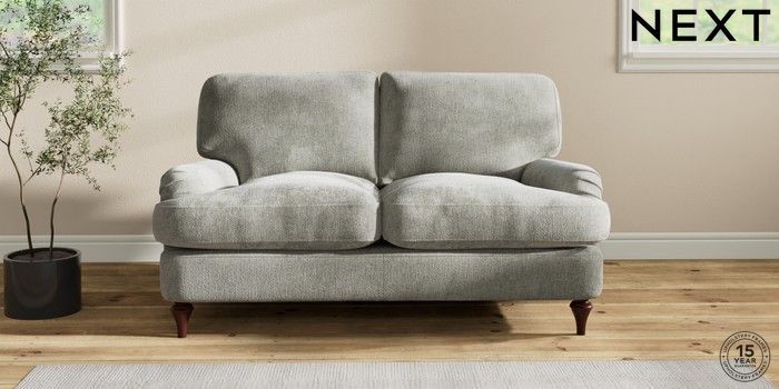 6.12.1 Buy Sadie Deep Relaxed Sit 2 Seater Small Sofa Chunky Chenille Light Grey High Slim Turned - Dark Brown from the Next UK online shop Click here to use our accessible website