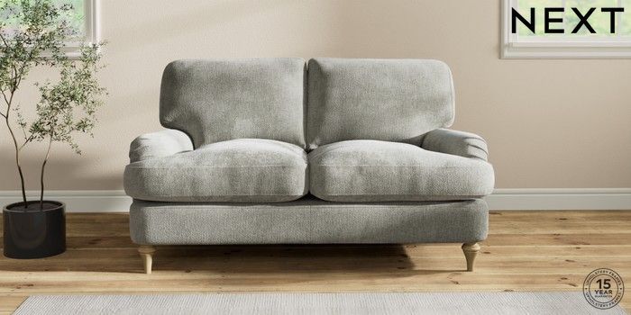 6.12.1 Buy Sadie Deep Relaxed Sit 2 Seater Small Sofa Chunky Chenille Light Grey High Slim Turned - Light from the Next UK online shop Click here to use our accessible website