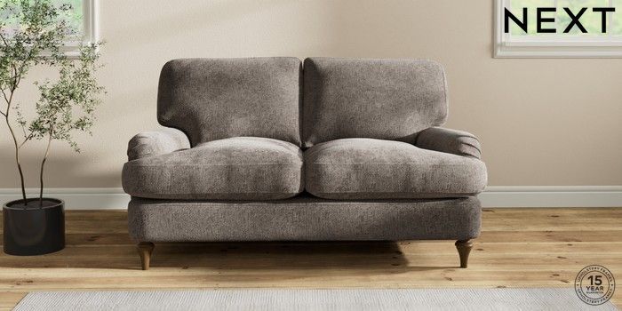 6.12.1 Buy Sadie Deep Relaxed Sit 2 Seater Small Sofa Chunky Chenille Mink Brown High Slim Turned - Mid from the Next UK online shop Click here to use our accessible website