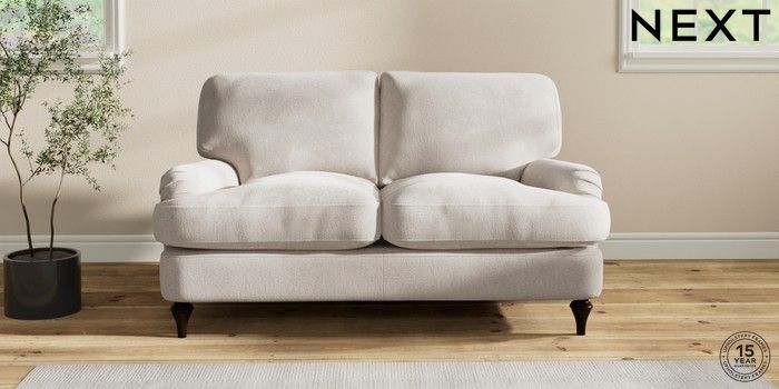 6.12.1 Buy Sadie Deep Relaxed Sit 2 Seater Small Sofa Chunky Chenille Oyster High Slim Turned - Dark from the Next UK online shop Click here to use our accessible website