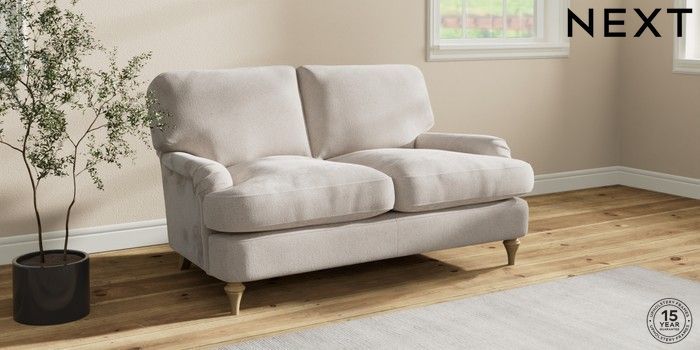 7.0.3 Buy Sadie Deep Relaxed Sit 2 Seater Small Sofa Chunky Chenille Oyster High Slim Turned - Light from the Next UK online shop Click here to use our accessible website