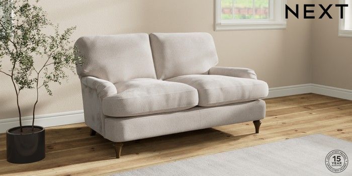 7.0.3 Buy Sadie Deep Relaxed Sit 2 Seater Small Sofa Chunky Chenille Oyster High Slim Turned - Mid from the Next UK online shop Click here to use our accessible website
