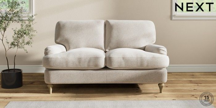 6.12.1 Buy Sadie Deep Relaxed Sit 2 Seater Small Sofa Chunky Marl Oyster High Slim Turned - Light from the Next UK online shop Click here to use our accessible website