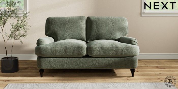 6.12.1 Buy Sadie Deep Relaxed Sit 2 Seater Small Sofa Chunky Texture Mid Forest Green High Slim Turned - Dark from the Next UK online shop Click here to use our accessible website