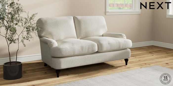 7.0.3 Buy Sadie Deep Relaxed Sit 2 Seater Small Sofa Chunky Texture Oyster High Slim Turned - Dark from the Next UK online shop Click here to use our accessible website