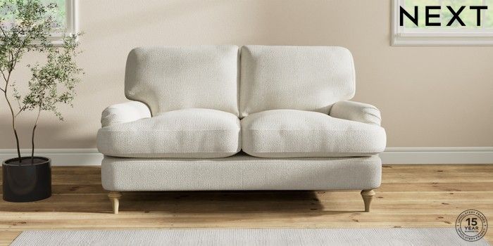 6.12.1 Buy Sadie Deep Relaxed Sit 2 Seater Small Sofa Chunky Texture Oyster High Slim Turned - Light from the Next UK online shop Click here to use our accessible website