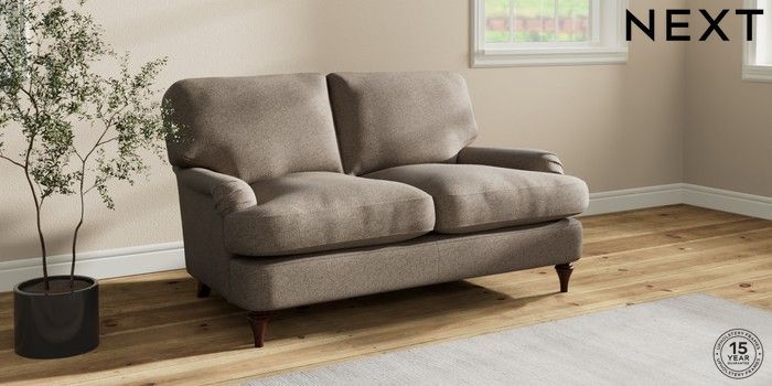 7.0.3 Buy Sadie Deep Relaxed Sit 2 Seater Small Sofa Chunky Weave Dark Natural High Slim Turned - Dark Brown from the Next UK online shop Click here to use our accessible website