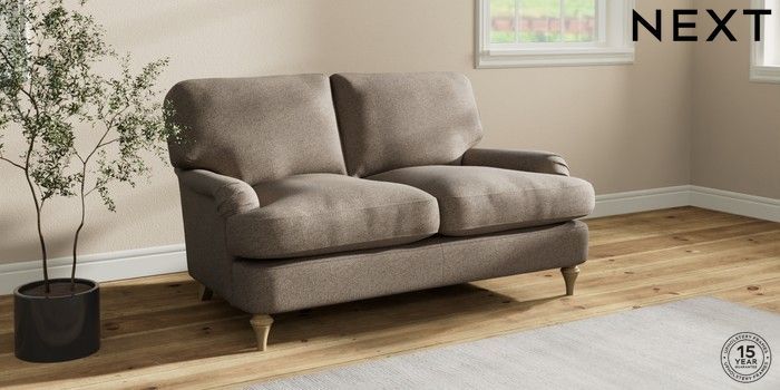 7.0.3 Buy Sadie Deep Relaxed Sit 2 Seater Small Sofa Chunky Weave Dark Natural High Slim Turned - Light from the Next UK online shop Click here to use our accessible website