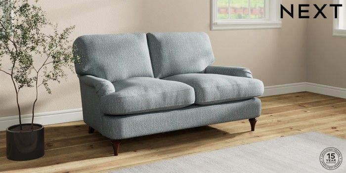 7.0.3 Buy Sadie Deep Relaxed Sit 2 Seater Small Sofa Chunky Weave Mid Blue High Slim Turned - Dark Brown from the Next UK online shop Click here to use our accessible website