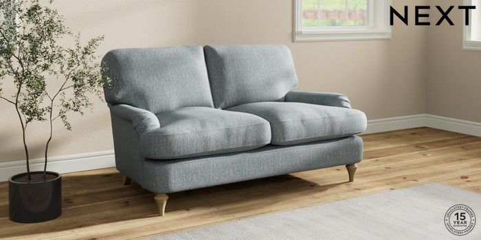 7.0.3 Buy Sadie Deep Relaxed Sit 2 Seater Small Sofa Chunky Weave Mid Blue High Slim Turned - Light from the Next UK online shop Click here to use our accessible website