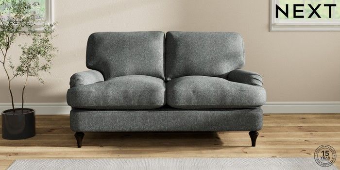 6.12.1 Buy Sadie Deep Relaxed Sit 2 Seater Small Sofa Cotswold Chenille Dark Grey High Slim Turned - Dark from the Next UK online shop Click here to use our accessible website