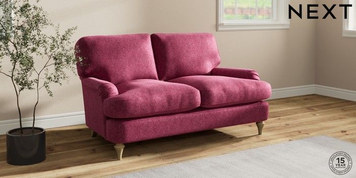 7.0.3 Buy Sadie Deep Relaxed Sit 2 Seater Small Sofa Cotswold Chenille Dark Raspberry Pink High Slim Turned - Light from the Next UK online shop Click here to use our accessible website