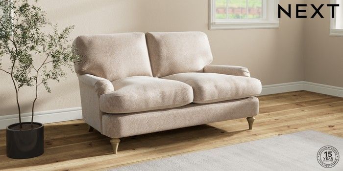 7.0.3 Buy Sadie Deep Relaxed Sit 2 Seater Small Sofa Cotswold Chenille Light Natural High Slim Turned - Light from the Next UK online shop Click here to use our accessible website